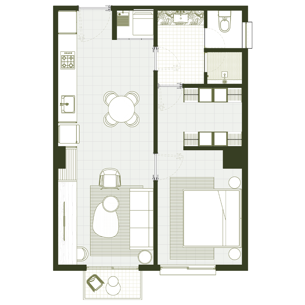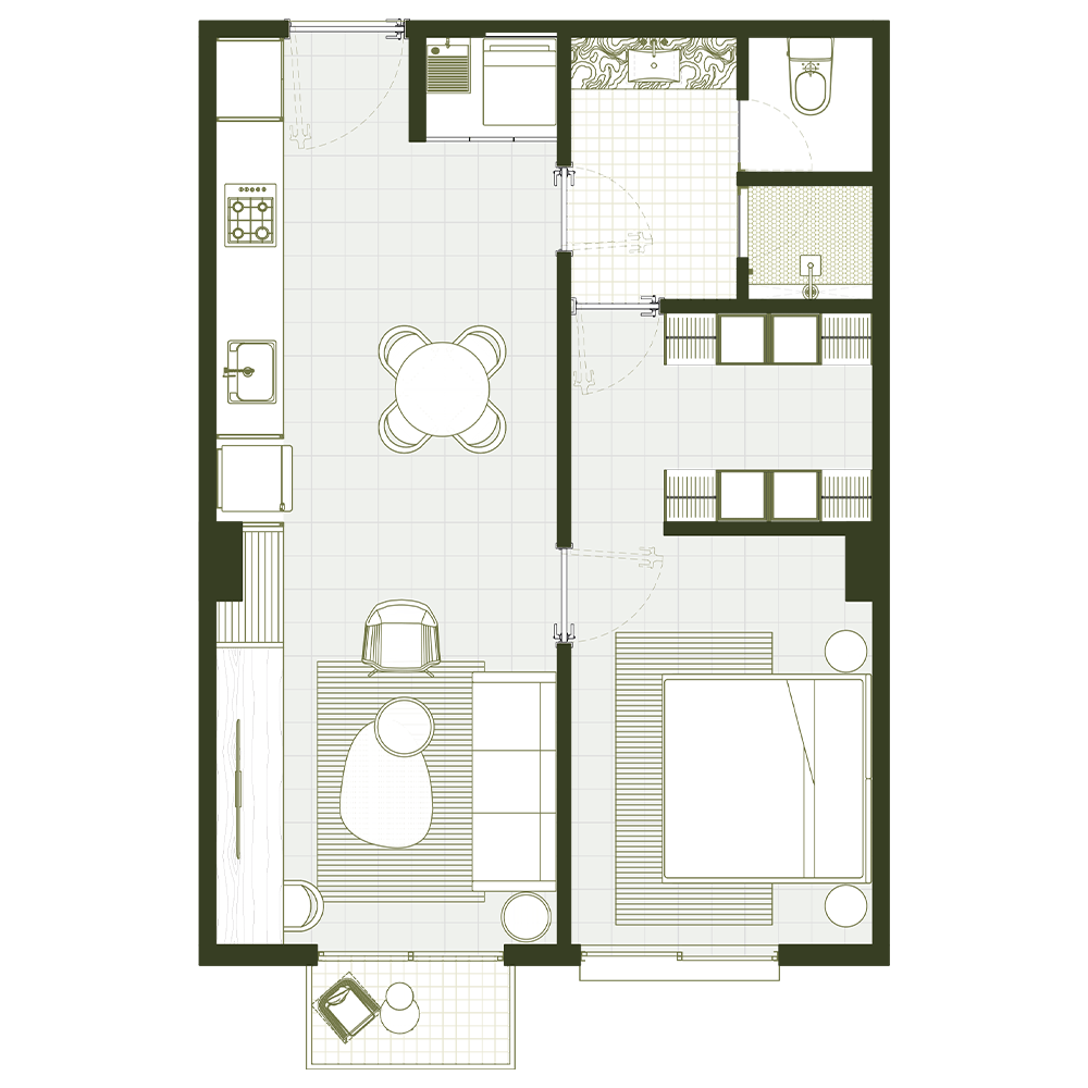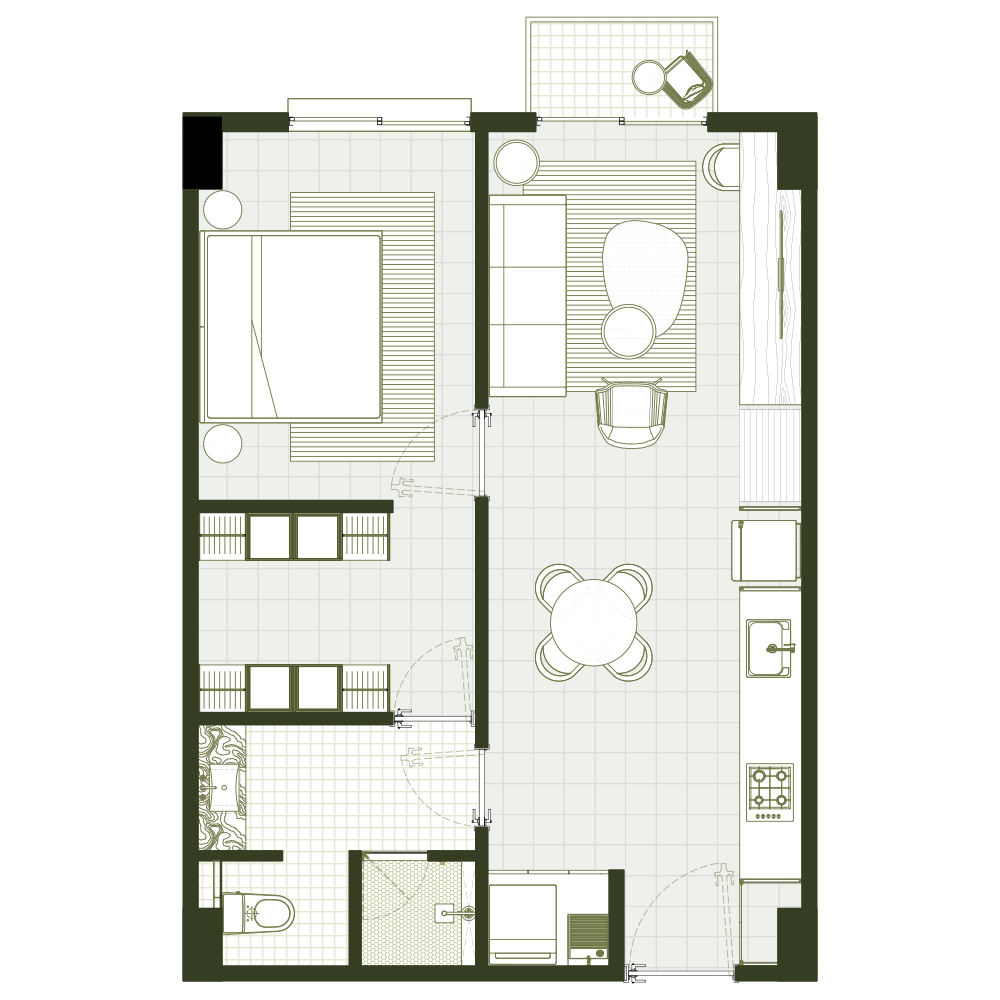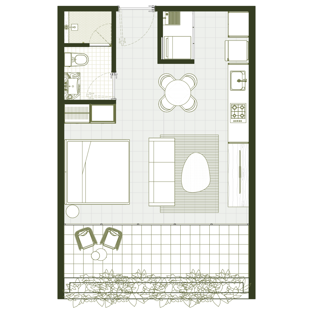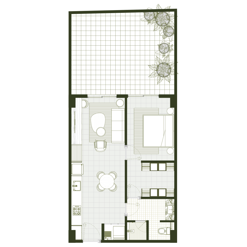 NO DEPA: 707 NIVEL: 7 M2 DEPA: 58.31 M2 TERRAZA: 2
