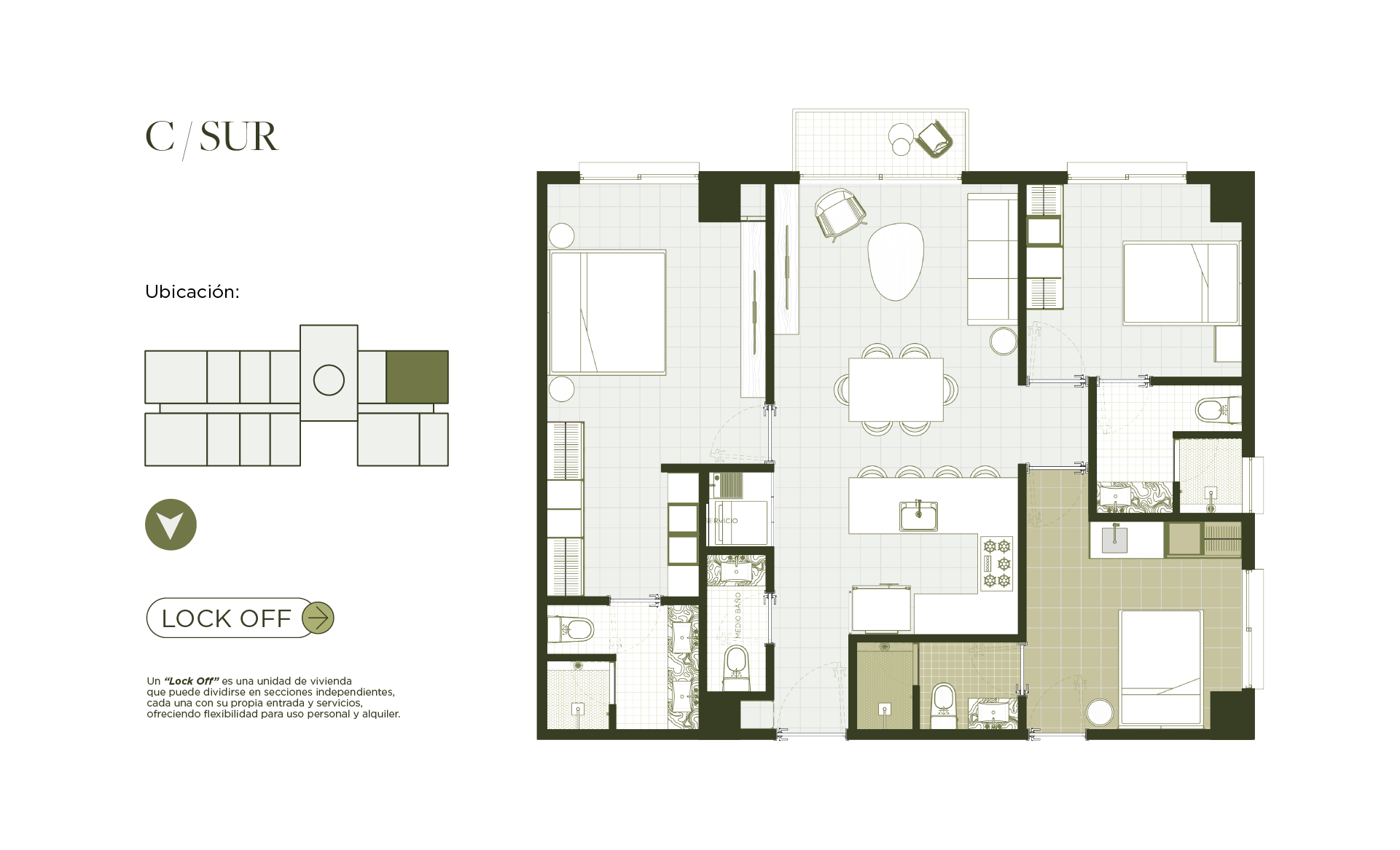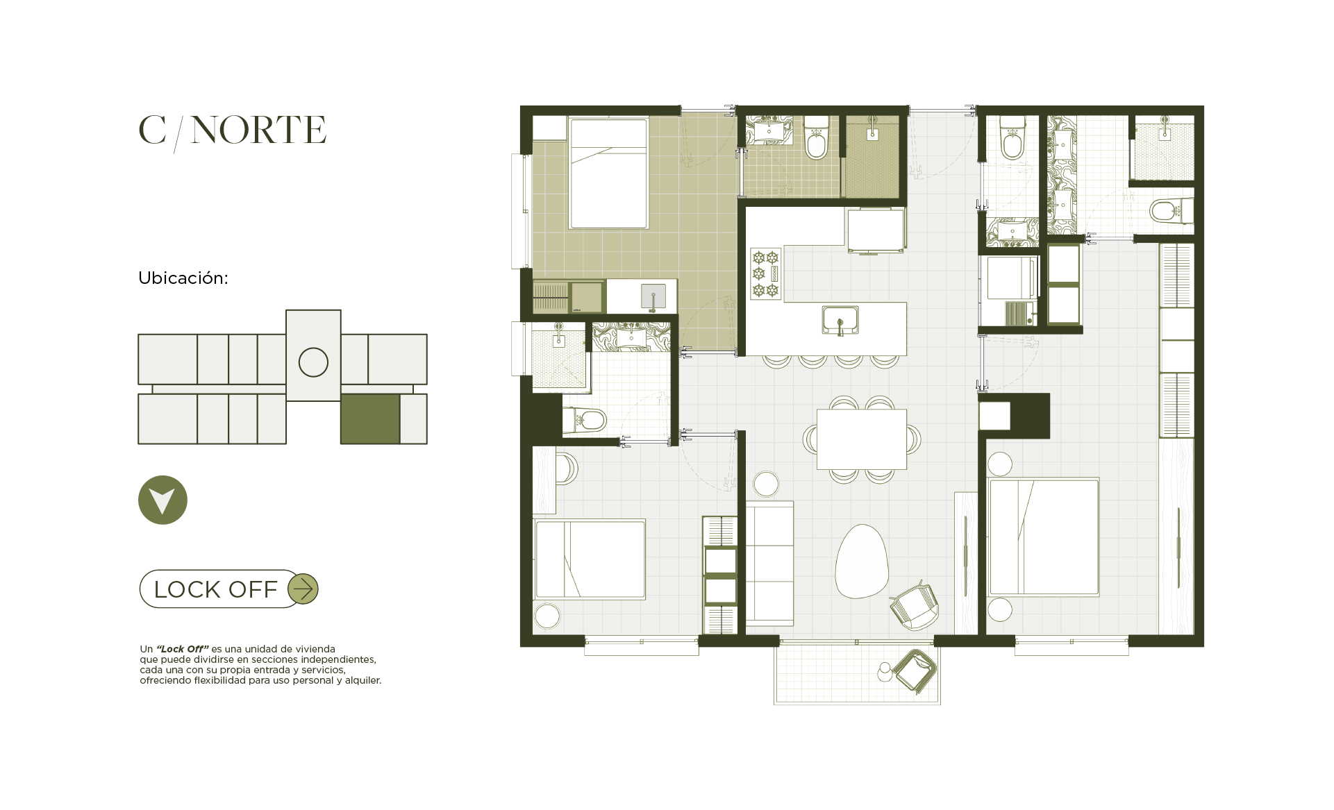 Recámara secundaria / Lock Off (closet, cocineta & baño)