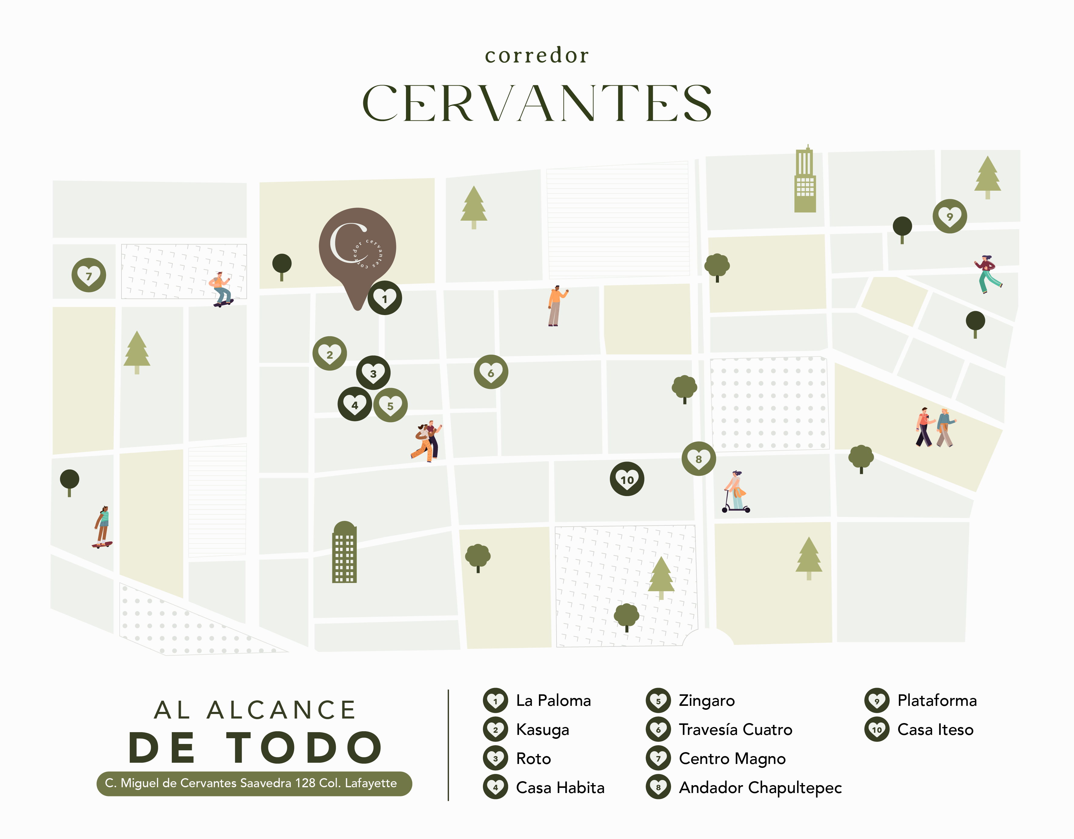 ¡Explora los al rededores de Corredor Cervantes sin necesidad de usar el auto!